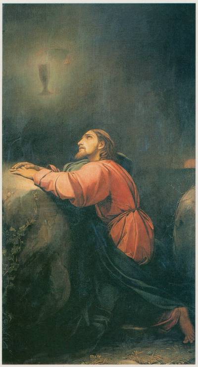 Подобную задачу попытался по-своему решить английский прерафаэлит Уильям Дайс. Художник изобразил одиноко сидящего на валуне Христа на фоне каменистого шотландского пейзажа. Для того, чтобы усилить впечатление тяжести состояния, было принято смелое композиционное решение – сильно сместить фигуру Спасителя вниз и влево.