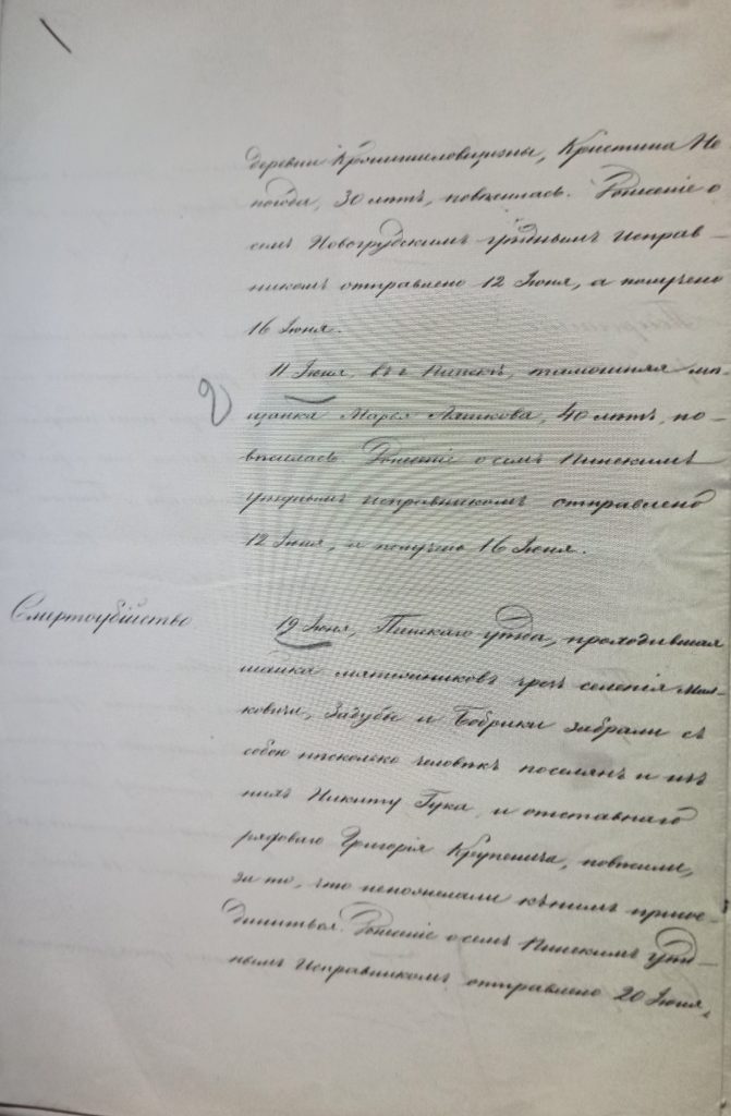 Кроме того, информация в этих сводках о происшествиях не отличалась исчерпывающим характером, могла дублироваться и конкретизировалась лишь в иных материалах делопроизводства. Так, в сообщении о происшествиях за вторую половину июня 1863 г. по Ковенской губернии упоминается информация от тельшевского исправника о повешенном 22 мая лукницком пятисотском Борткевиче [11, л. 80], а в донесении россиенского исправника, попавшим в сводку о происшествиях за вторую половину мая, т.е. более раннюю по времени, сообщается о найденных в Цитовянском лесу трех повешенных повстанцами крестьянах «по прозваниям еще неизвестных» [11, л. 76]. Однако в записке тельшевского военного начальника от 27 августа 1863 г. указывалось, что повешенными в лесу близ местечка Цитовяны оказались лукницкий пятисотский Борткевич, вешвянский сельский старшина Шилинский и объездчик лесной стражи Можейко [3, с. 226]. Показательно, что в сводку за вторую половину июня не попали сведения о личности и должности повешенных вместе с пятисотским старшины и объездчика.