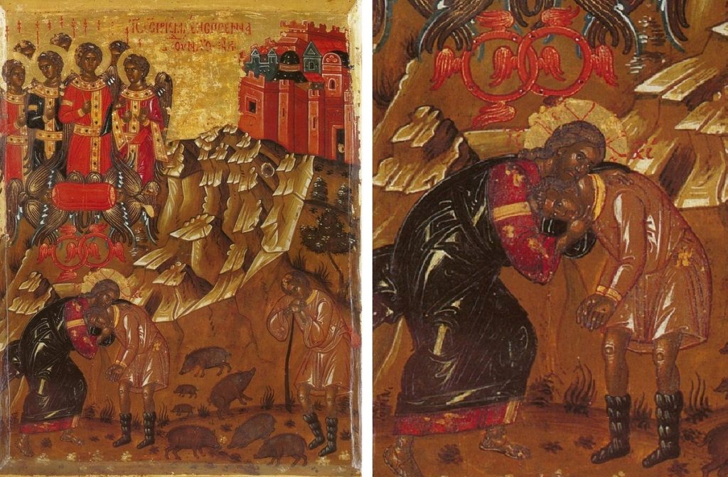А вот в картинах, повествующих о горестном пути беспутного мота, мы не видим ликования небес. При том, что традиционно в средневековых иконах, живописующих притчу, блудный сын возвращается домой в сопровождении сил бесплотных.